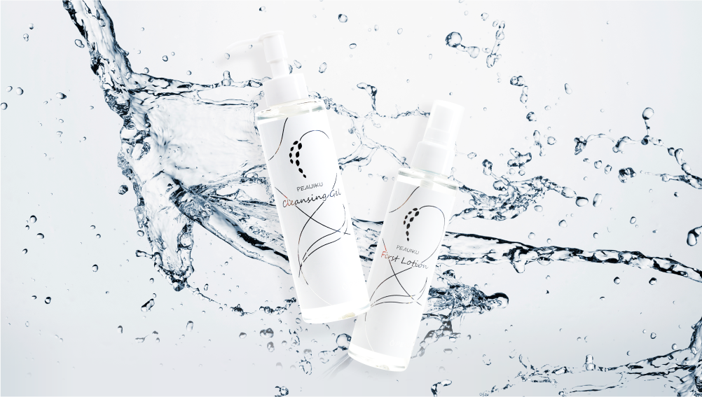 弊社が手掛ける商品のうち、スキンケアのPEAUIKUシリーズでは、弊社が考案した”耕育美容(こういくびよう)”をコンセプトに、現在ではクレンジング、そしてファーストローションをリリースしています。